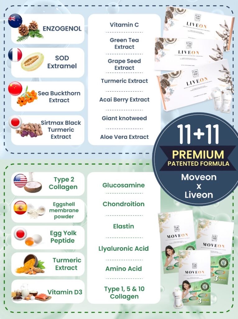 We stand behind the safety of Moveon & Liveon. Formulated by doctors and backed by clinically patented ingredients and Safety Approval.